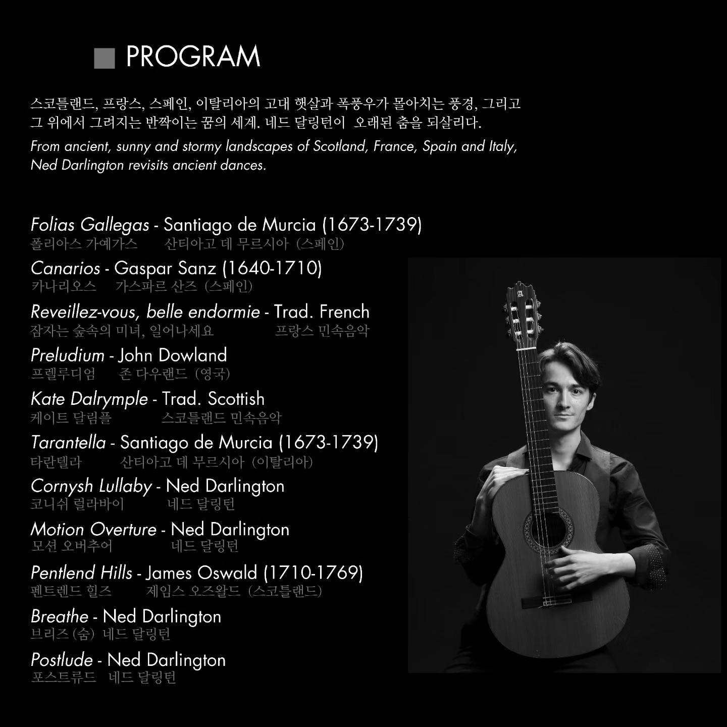 기타 리사이틀 Ned Darlington 오래된 춤 2023년 7월 21일 금요일 저녁 8시 입금 시 20,000원/ 카드결제시 부가세10% 포함 22,000원입니다.