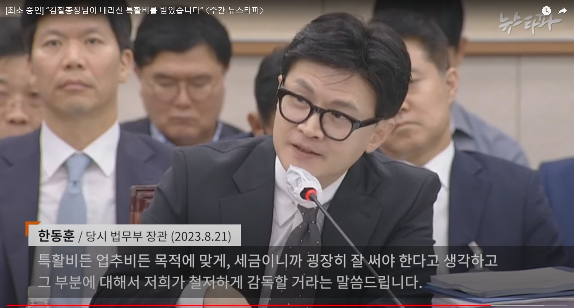 특활비든 업추비든 목적에 맞게, 세금이니까 굉장히 잘 써야 한다고 생각하고 그 부분에 대해서 저희가 철저하게 감독할 거라는 말씀드립니다.한동훈 당시 법무부 장관 (2023. 8. 21. 국회 법사위)