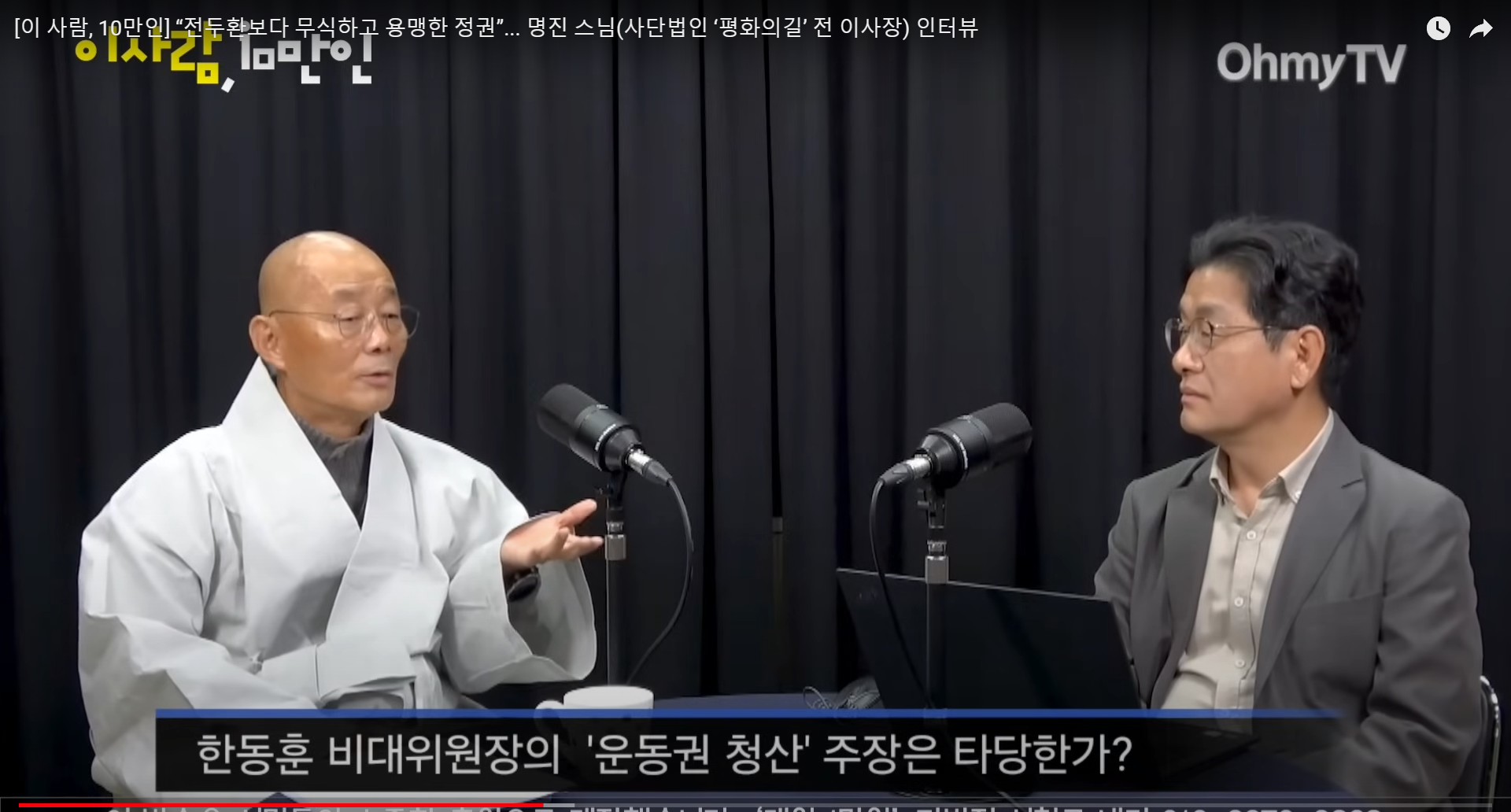 명진 스님은 한동훈 국민의힘 비상대책위원장이 '운동권 청산론'을 들고 나온 것에 대해서도 할 말이 많았다.
