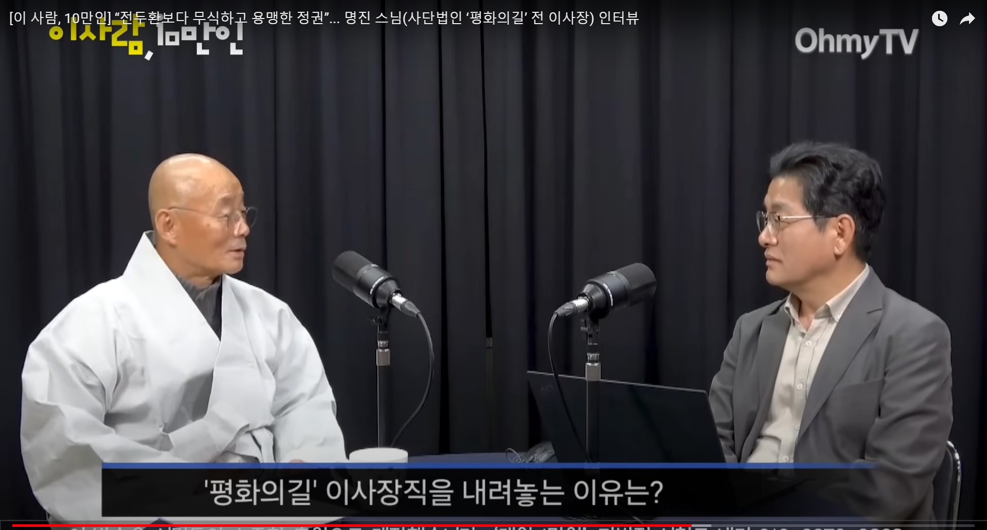 명진 스님은 지난 2월 29일 사단법인 '평화의길' 이사회를 앞두고 <오마이TV> '이 사람, 10만인' 인터뷰에서 윤석열 대통령 만들기 1등 공신으로 불렸던 자승 전 원장의 미스터리한 자살의 원인과 윤석열 정부와 조계종단의 관계 전망, 오는 4월 총선의 의미 등에 대해 밝혔다. 이날 열린 이사회에서 명진 스님은 향후 수행에 정진하겠다는 뜻을 밝히면서 이사장직을 사임했다.