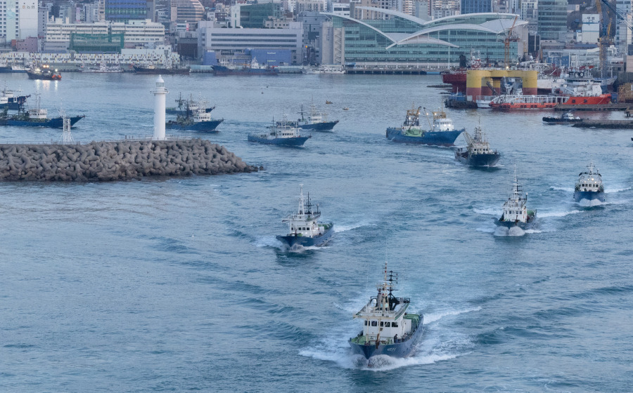 지난 7월 부산공동어시장에서 만선의 꿈을 품고 출항한 대형선망수협 배들.